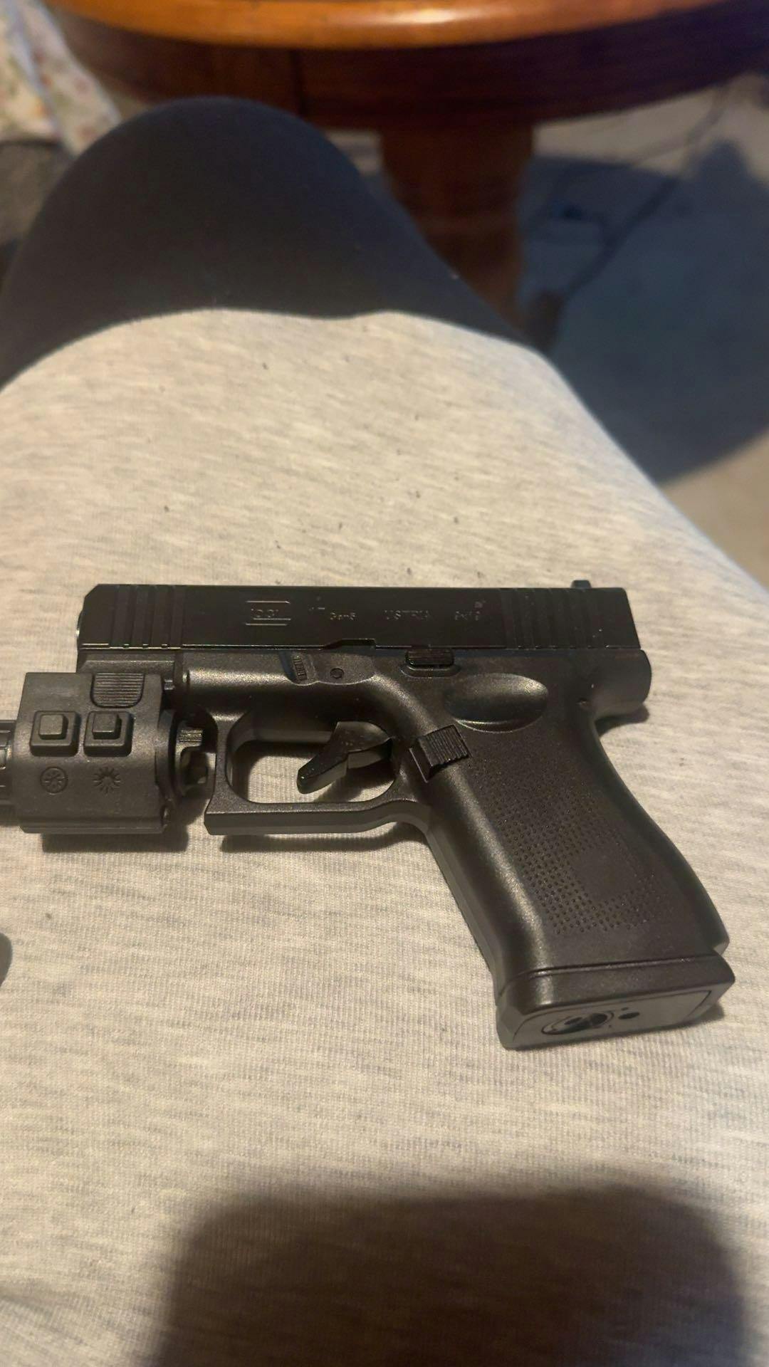 Jeff Kwan Neat little butane lighter I must admit, something that will definitely stay at home only lol. On the flip side very disappointed because the young lady that was advertising this said “it’s all metal” which is not completely true buuuuutttt……. If you think about it a real Glock is the same way.