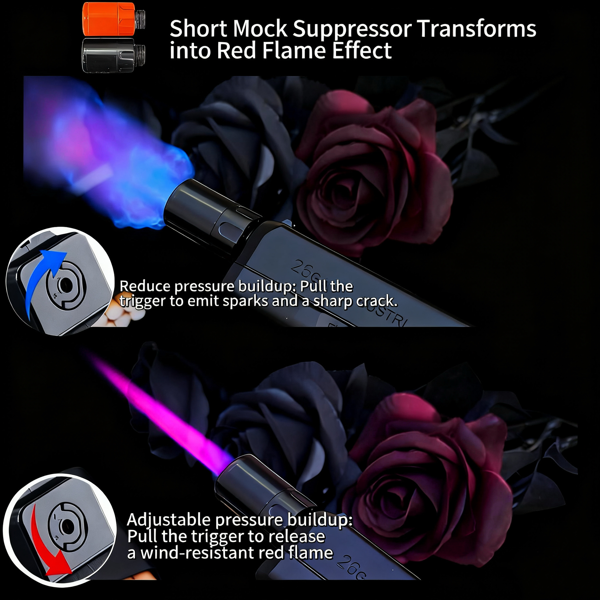 Installing the metal converter transforms blue flames into vibrant red tactical lighting